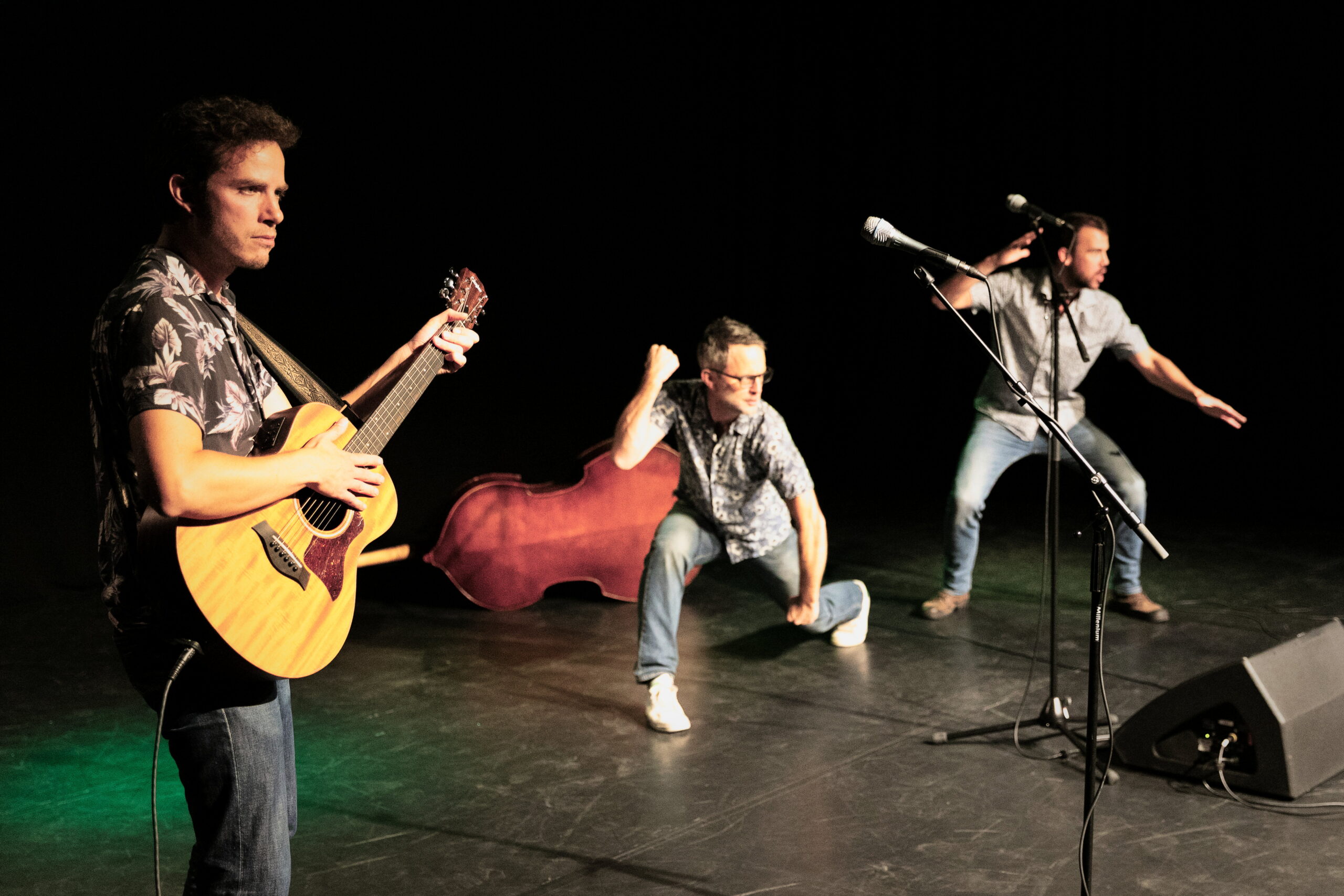 Portés par leur amour du voyage et des musiques “du monde”, Samir Barris, Nicholas Yates et Benoît Leseure nous embarquent dans un répertoire glané aux quatre coins du globe (Indonésie, Danemark, Serbie, Pérou, Louisiane, Japon, Afrique centrale, Australie…). Au violon, à la guitare et à la contrebasse, ils mêlent paroles originales et adaptations en français, polyphonies, arrangements soignés… et quelques pas de danse pour pimenter le tout.